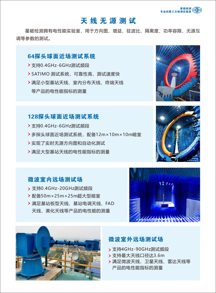 支持400MHz至6GHz测试频段,最大天线尺寸长达3米,最大重量达120公斤,能满足大型基站天线的电性能指标的测量。