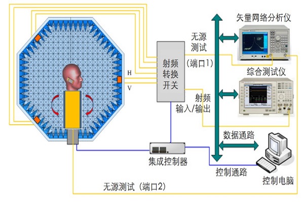 在终端设备的射频性能测试中,整机辐射性能的测试越来越受到各方面的关注,这种辐射性能可以反映终端的最终发射和接收性能。对终端的辐射性能进行考察基本有两种方式:一种是无源测试,另一种是有源测试。